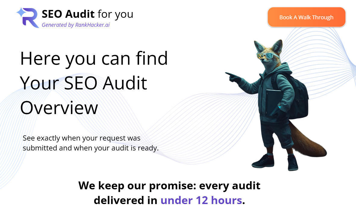 The moment you click submit, our AI-powered platform goes to work. Within 12 hours, you’ll receive a comprehensive SEO & AIO audit that reveals exactly how Google and AI search engines view your site. Our AI agents crawl every page, uncovering opportunities to make your site faster, easier to understand, and more accessible, both for Google’s algorithms and modern LLMs.
